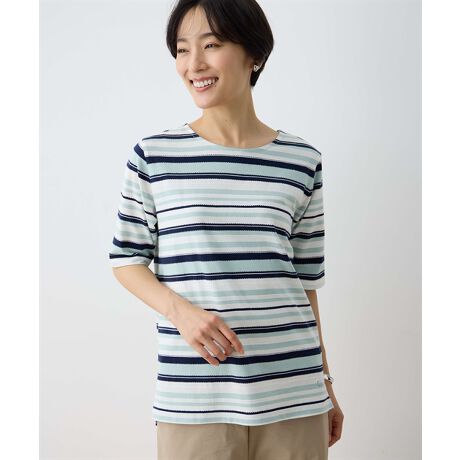 表面感のあるリップルボーダーがアクセントに映えるTシャツ