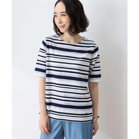 表面感のあるリップルボーダーがアクセントに映えるTシャツ