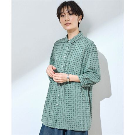 細やかな柄プリントがレトロな風合いを放つブラウス