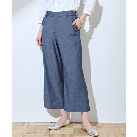 シャンブレー生地が滑らかな風合いを放つパンツ
