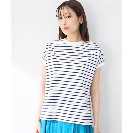 カジュアルになりすぎない細めのボーダー柄で、程よくきれいめな印象を与えます。