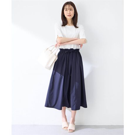 裾に向かってなだらかに広がるAラインのシルエットになっており、フェミニンなムードを演出します。