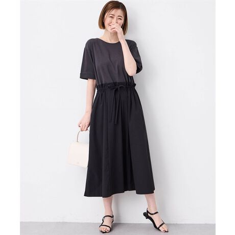 異素材ドッキングがメリハリのある印象を与えるワンピース