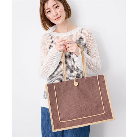[型番:526786]フレームのようなパイピングデザインがアクセントナチュラルな素材使いが爽やかな印象を演出するスクエアトートバッグ。かっちりとした横長のフォルムで荷物の収納も楽にすることができます。内側には小物もさっと出し入れできる便利なオープンポケット付き。タウンユースはもちろん、レジャーやアウトドアなどのシーンにも活躍してくれるアイテムです。