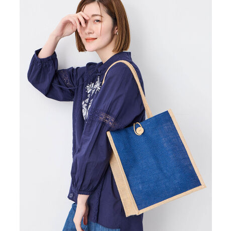 [型番:526787]爽やかな印象を演出してくれるナチュラルな素材使いがポイント配色切り替えとボタンがアクセントになった、おしゃれなトートバッグです。かっちりとしたスクエアフォルムで収納も楽にすることができます。内側には便利なオープンポケット付き。日常使いはもちろん、海などのリゾートシーンにも活躍してくれるアイテムです。