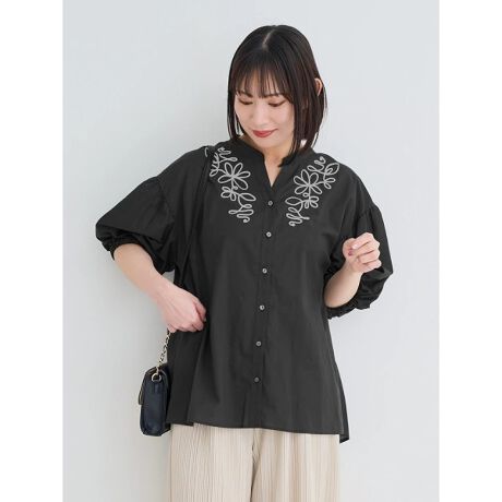 花モチーフのコード刺繍を胸にあしらったトレンドライクなシャツ。