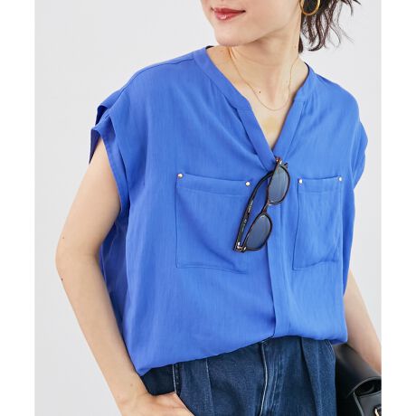 ドライタッチなリネンライク素材で仕立てた、ニュアンスのあるシルエットのブラウス。
