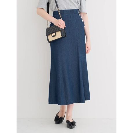 ポケットにボタンをあしらったマリンテイストなデザインが可愛いデニムスカート