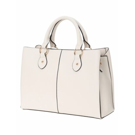 知的な印象のスクエアフォルムで仕立てられた合皮バッグ。
