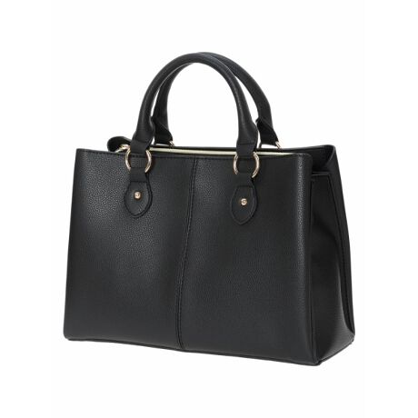 知的な印象のスクエアフォルムで仕立てられた合皮バッグ。