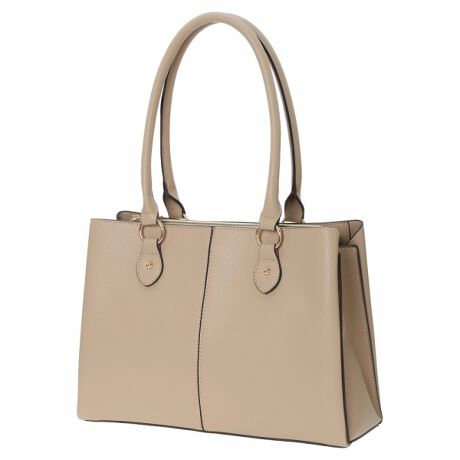 [型番:25570351627]仕事からプライベートまで幅広く活躍してくれる合皮トートバッグ。かっちりとしたスクエアフォルムが知的な印象を与えてくれます。メイン収納はマチ幅があるので使いやすく、両あおりポケット付きなのも便利なポイント◎シンプルなデザインでスタイリングにも取り入れやすいアイテムです。