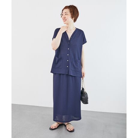 ドライな質感のリネンタッチのミラノリブ素材が快適な着心地。