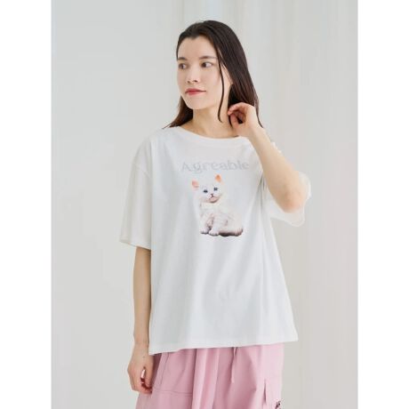 愛らしい猫のプリント×レースリボンに心ときめくTシャツ
