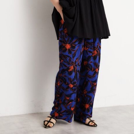 レーヨンリネン総柄ワイドパンツ【洗える】