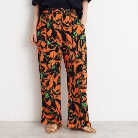 レーヨンリネン総柄ワイドパンツ【洗える】