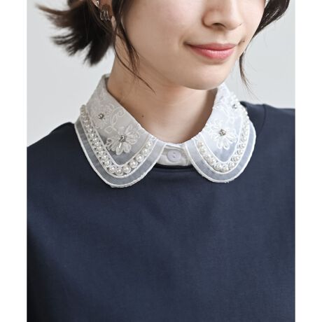 プラスワンでコーデがぐっと華やかになるビジュ付きの付け衿。