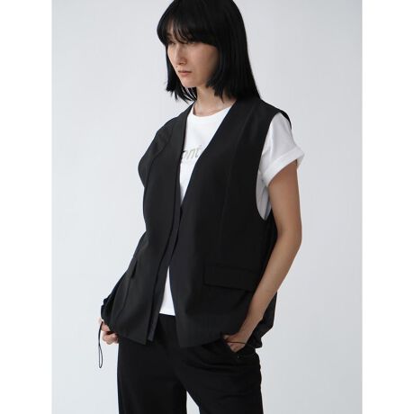大人モードなレイヤードデザインにLASUDらしいカジュアルさを加えた表情あるジャケットベスト。