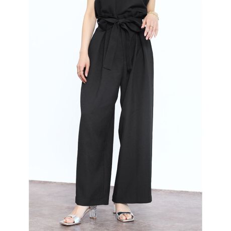 リネンライク共布ベルト付きワイドパンツ