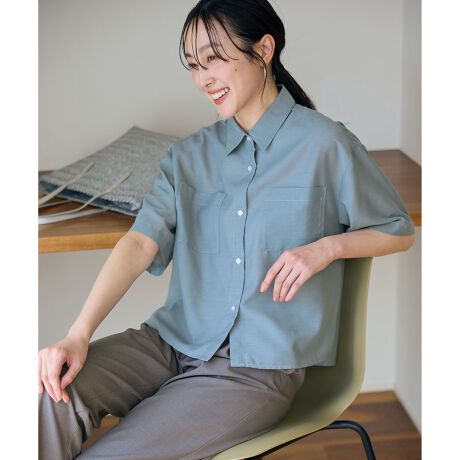 ・同素材のシアーテックリネンギャザーブラウス(品番:BLFBGM0502)もおすすめ