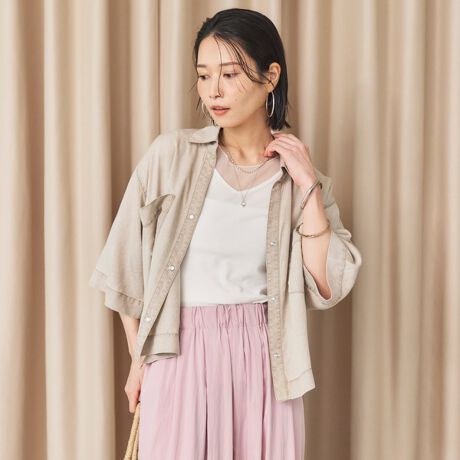 ・袖ぐりと襟ぐりに幅広めにあしらったシアー素材がアクセントに