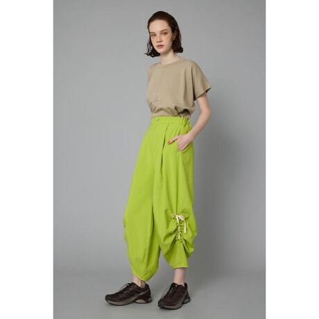 サイドギャザーがデザインポイントなパンツコクーンのシルエットが体系カバーしつつ他にはないシルエットになっています。糸から生機にこだわり、ドライなタッチを保ちながら着心地の良い2wayストレッチに仕上げられた素材です。サイドギャザーパンツ[注意事項] ※画像の商品はサンプルです。実際の商品と仕様、加工が若干異なる場合があります。 ※画像の商品は光の照射や角度、お使いのモニター環境により、実物と色味が異なる場合がございます。 ※着用、お取り扱いの際は、アテンションタグをご確認ください。