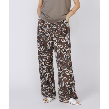 INEDオリジナルプリントでお作りした、ウエストゴムのイージー仕様の1タックワイドパンツ。ウエストのフロント部分はフラットなベルトになっているので、トップスをインにした際の見た目が綺麗に見えます。裾を広げ過ぎず、腰から真っ直ぐ落ちるIラインシルエットで縦が強調されるのでスッキリと見えます。■素材ポリエステルサテンの生地にINEDオリジナルのアブストラクト柄/リーフ柄をプリントしました。 ・裏地なし・ポケットあり・後ろウエストゴム仕様・水洗い可■サンプル撮影商品■こちらの商品はサンプルでの撮影となっております。実際の商品とは、サイズや色味、素材、デザイン等の仕様が若干変更になる場合がございます。