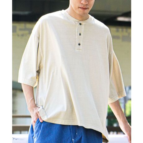 コットン100%のさらりとした生地で仕立てたヘンリーネックTシャツ。