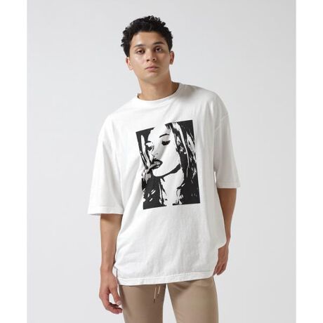 ・ルーズシルエットのシルクスクリーンプリントTシャツ