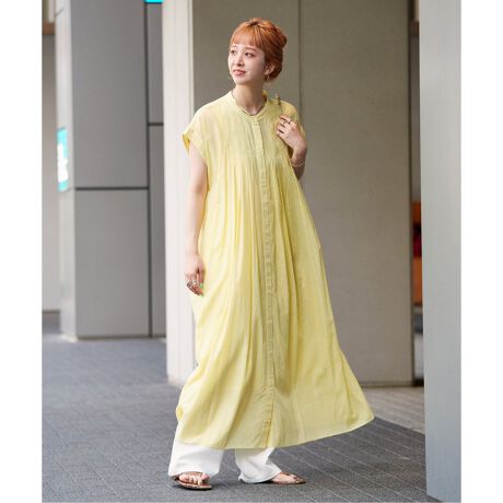 レーヨンコットン素材を使用した柔らかな肌触りと軽い着心地で暑い時期にも着用しやすく、フレンチスリーブとフロントの細めのタックが上半身をすっきりと見せてくれます。羽織としても着用できるのでスタイリングの幅が広がるアイテムです。