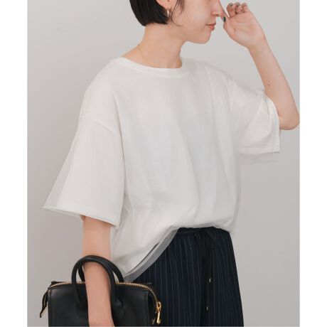 活躍の幅が広がるシアーニットビッグTシャツ。
