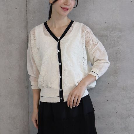 【etre relie】レース編み綿麻ニットカーディガン