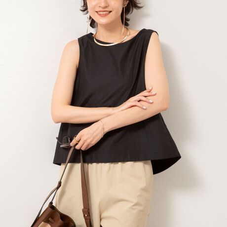 ・程よい開きのボートネック、二の腕がきれいに見えるアームホールがポイント