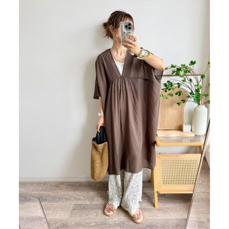 ゆったりシルエットで着やすいレイヤードワンピ。