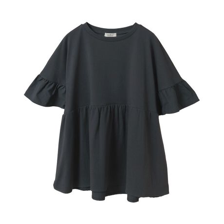 カジュアルなジャージー素材をベースにしたゆったりシルエットのプルオーバーTシャツ。ドロップしたポンチョ型のショルダーでふんわりと軽やかに着用いただける一枚です。袖とバックに異素材フリルをドッキングしたフェミニンなアクセントがポイント。接触冷感素材の快適性と洗濯機で洗えるのも嬉しいイージーケア素材。