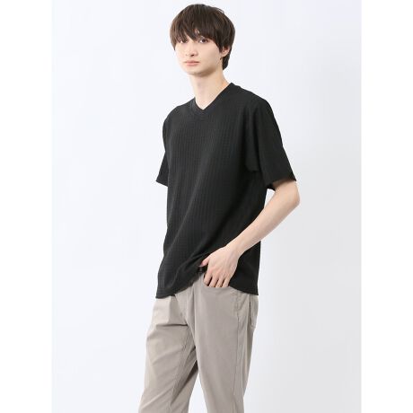 汗ばむ季節も快適に着ていただける、Vネックの半袖Tシャツです。シアー感のあるドビー素材で涼しげな雰囲気に仕上げています。一枚で着るのはもちろん、ジャケットやシャツ、ベストのインナーとしても便利なアイテムです。
