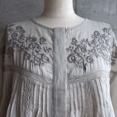 ハンド刺繍半袖ブラウス