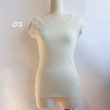 TCタンクと同シリーズ衿ぐり、アームホール、裾をカットオフ始末したフレンチスリーブインナーです。