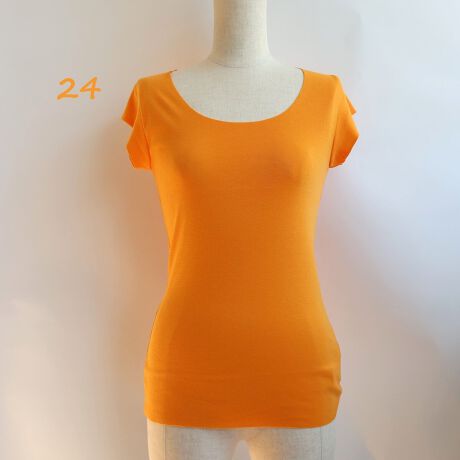 TCタンクと同シリーズ衿ぐり、アームホール、裾をカットオフ始末したフレンチスリーブインナーです。