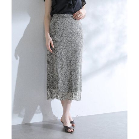 ラッセルレースを使用した、繊細で上品な柄が魅力のスカート。