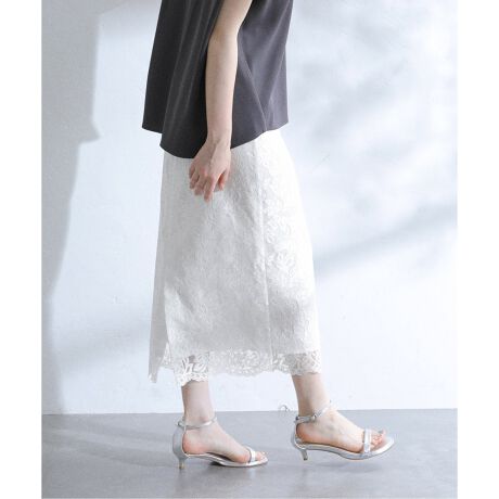 ラッセルレースを使用した、繊細で上品な柄が魅力のスカート。