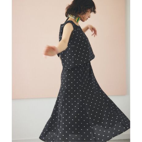 ドット柄に一目惚れして購入しました。べージュ生地にブラックの柄なのでシックに着こなせるところが気に入っています。汗をかく季節に着るので自宅で洗濯できて嬉しいです。