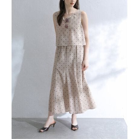 ドット柄に一目惚れして購入しました。べージュ生地にブラックの柄なのでシックに着こなせるところが気に入っています。汗をかく季節に着るので自宅で洗濯できて嬉しいです。