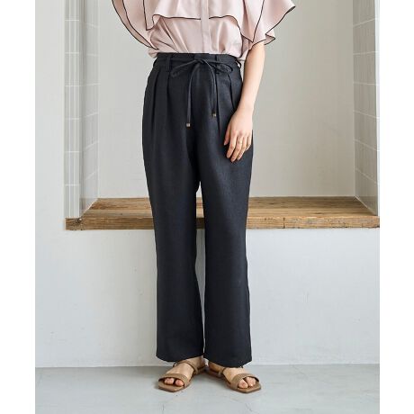 【mil (ミル)】リネンライク 細ベルト付き タックパンツ【セットアップ対応】