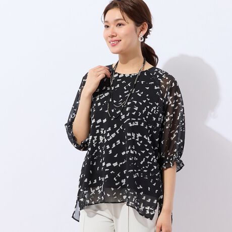 【洗える】シフォン楊柳 幾何柄ブラウス