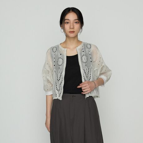 シュワっとした泡のような刺繍が涼し気なシンプルブルゾンです。