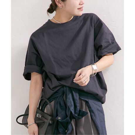 すっきりとしたネックのデザインとひじまである少し長めなスリーブとのバランスが絶妙に1枚でも決まる優秀なTシャツ。