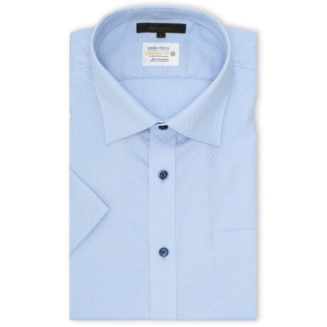 清潔感があるドビーの織り柄(市松模様)です。衿型は衿開きが大きく、ネクタイとのバランスが取りやすいワイドカラーを採用しています。