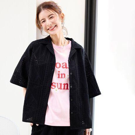 ●ボイル生地に繊細な刺繍を施した、涼しげな印象のエンブロイダリーレースシャツ