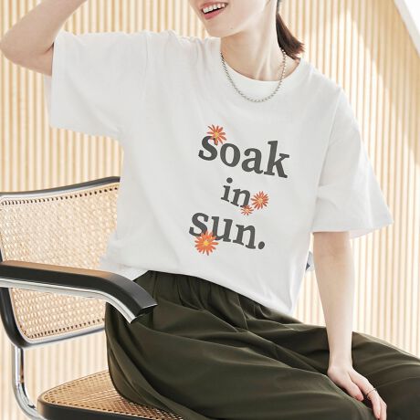 ●丸みのあるフォントと立体感のある発泡プリントで仕上げた、デイジーのグラフィックが印象的