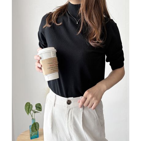ハイネック半袖ニットトップス